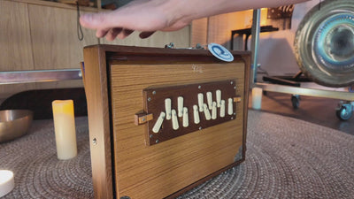 The Shruti Box from India is a traditional drone instrument tuned to 432Hz, known as the healing frequency of the Earth. Compact yet powerful, it produces strong continuous tones or chords similar to a harmonium or accordion, making it perfect for meditation, mantra chanting, and sound healing practices.